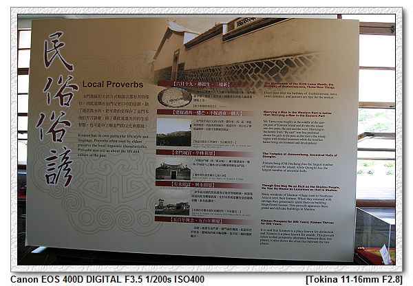 莒光樓一樓有簡報室,主要展示金門風獅爺以及一些民俗俗諺。