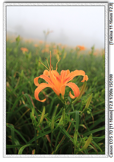 【滿山的金針花,也被霧給包圍了】
