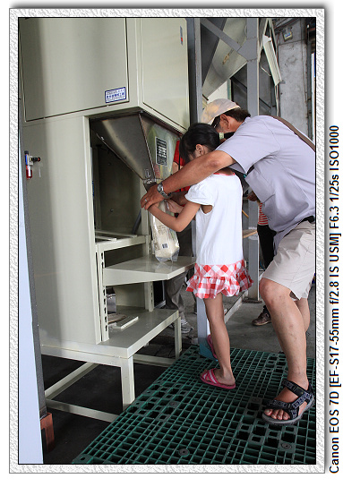 【用腳一踩,米就落入袋哩,剛好一公斤】
