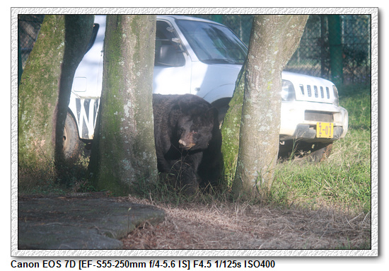 因為我們參觀的梯次是最後一梯,大部分的動物這時都要回家睡覺,而園區內ㄧ輛輛白色的吉普車,就是用來驅趕回家用的。解說 員有提到,因為白色吉普車會驅趕牠們,所以這些動物對於吉普車很反感,有時會做出攻擊的動作。