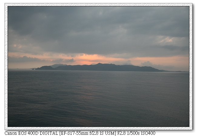 本來預計早起看海上日出,不過5:15起床時已經天亮了(不是說5:30才天亮的嗎?船長騙人啦~)。甲板上還滿多人~還有人晚上是睡在海灘椅上,真猛。不過左晚沒看到幾顆星星,不知是不是月亮比較亮的關係。ㄚ知~