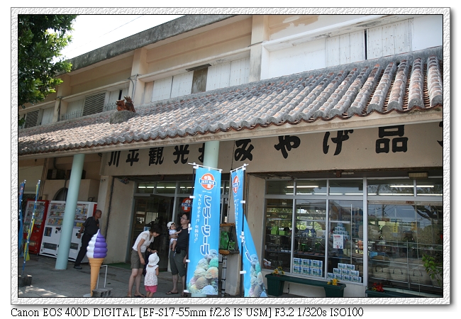 走回川平公園時,遠遠的就發現台北阿媽已經坐著吃冰淇淋(台北阿媽想去旁邊商家血拼,所以就沒有跟著走)。肚子餓的小羽當然也先吃了一個冰淇淋解餓,小羽這次居然選了平常不會選的草莓冰淇淋,而且還不吃餅乾的部分(真挑~誰家的小孩啊?)。
