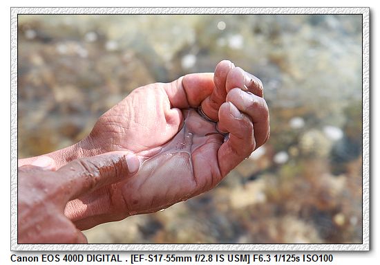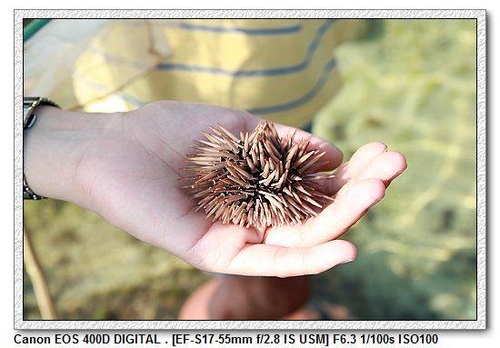 ▼小羽抓海膽,真是值得紀念的一刻,最後海膽是摔到海裡。