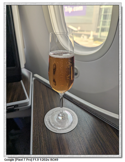 ▼【起飛前飲料,會來杯香檳酒,可以選口味,但聽不懂亂選】