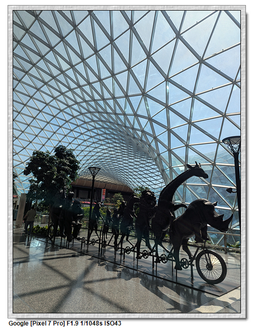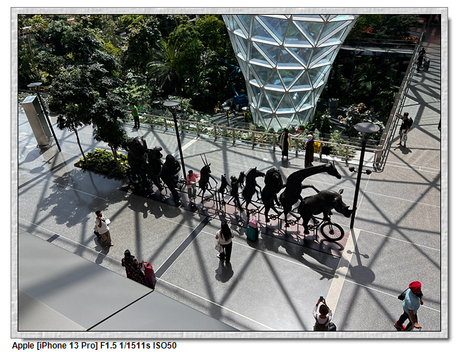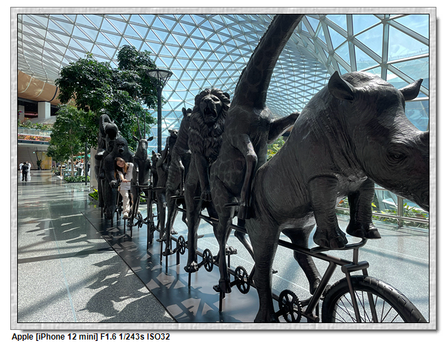 待了兩個多小時,也差不多該前往登機門了,先來花園找找剛剛看到的 動物騎腳踏車 裝置藝術。