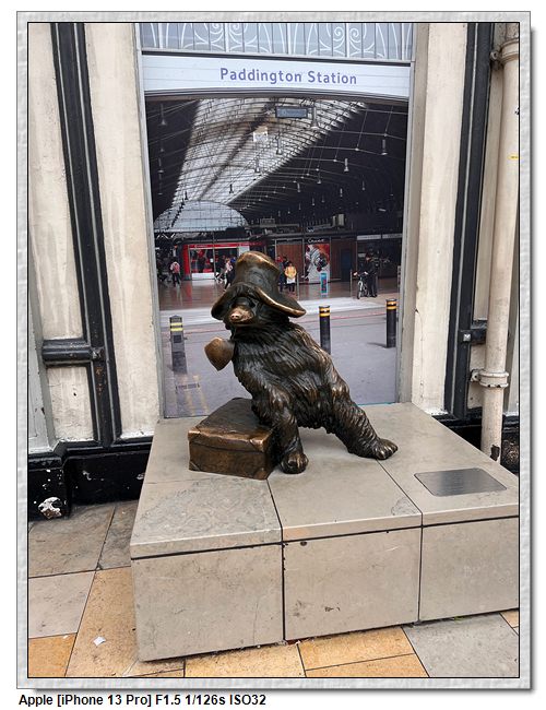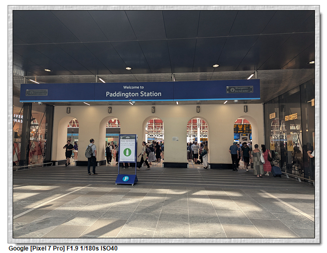 帕丁頓站位於英國大倫敦派丁頓地區,是國家鐵路局與倫敦地鐵的鐵路車站,擁有悠久的歷史,自從1838年就是大西部鐵路在倫敦的終點站。帕丁頓站也在1863年開始倫敦地鐵的服務,也是大都會鐵路(為世界上最早的一條地鐵)西邊的終點站。儘管擁有悠久的歷史,帕丁頓車站也越來越現代化,後來增加了一條路線,專供通往倫敦希斯洛機場的希斯洛機場快線(Heathrow Express)行駛,昨晚搭乘時有經過。 這座車站因其與虛構角色柏靈頓熊(Paddington Bear)的聯繫而聞名。