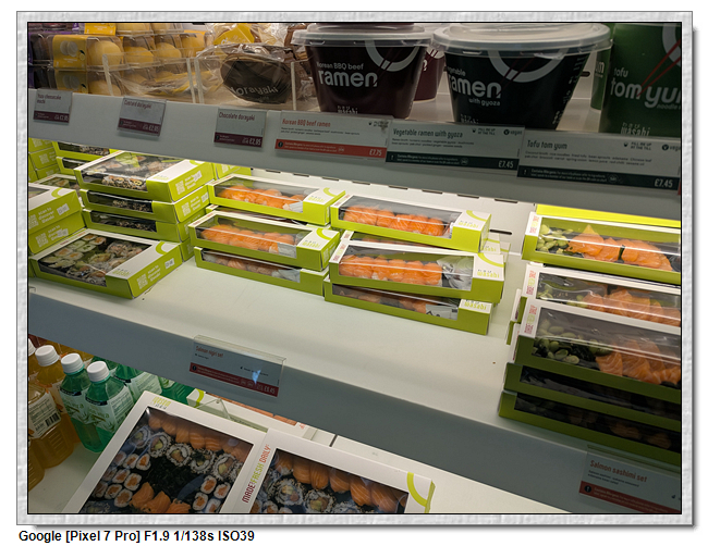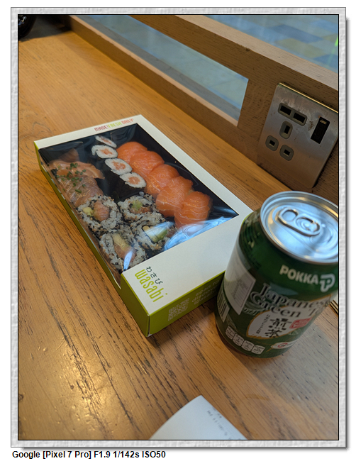 ▼【在車站內的壽司店買點東西吃,這裡內用價格與外帶價格不同(外帶6.45英鎊,內用7.75英鎊)】