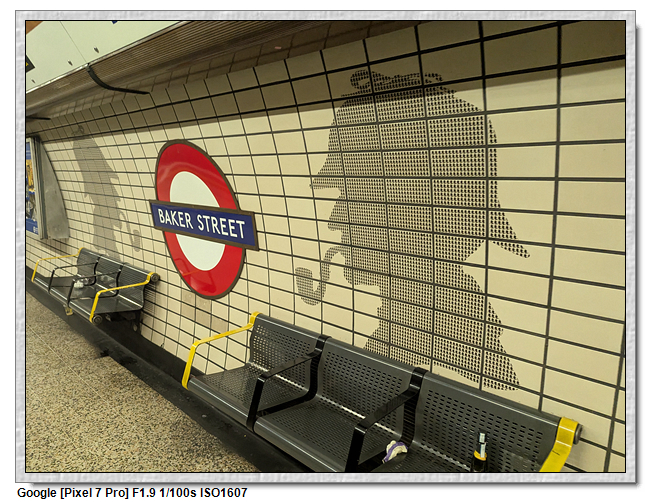 ▼【抵達貝克街,不要急著出站,車站內有福爾摩斯的剪影】