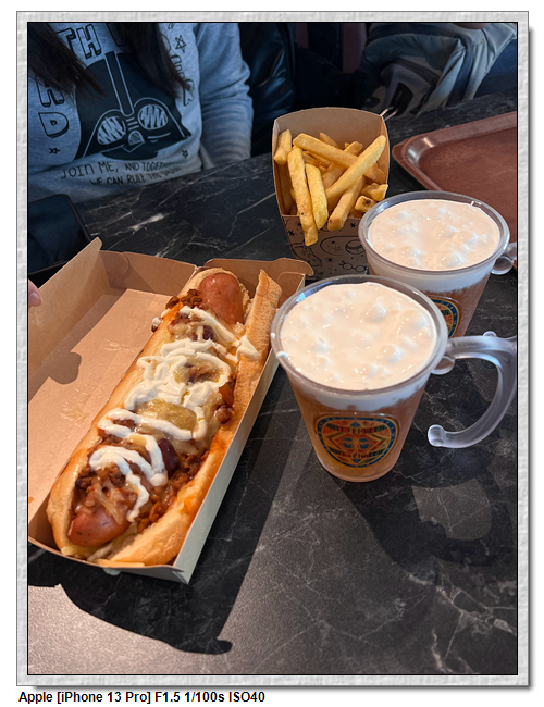▼【點了熱狗、薯條以及兩杯奶油啤酒】
