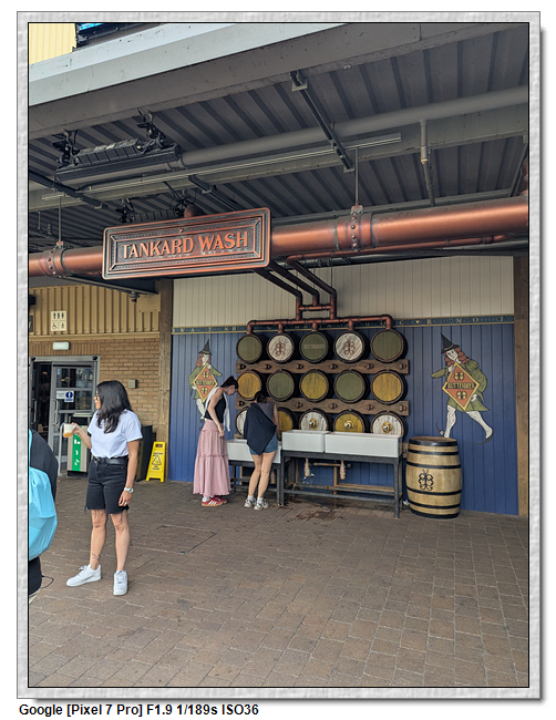 餐廳內可以洗手的地方,包含廁所都貼滿的告示,不能在這洗杯子,一時間小羽爸也找不到可以洗杯子的地方(東京有一區專門讓你洗杯子的地方),所以我們只好用衛生紙擦拭乾淨,走到戶外才看到 tankard wash,原來洗杯子在這裡。