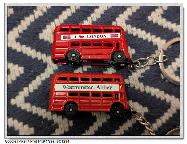 西敏寺購買的復古巴士鑰匙圈(3.95英鎊)與諾丁丘購買的復古巴士鑰匙圈(0.77英鎊),外觀上差異不大,路邊版的的確比較不細緻,車身貼紙貼歪,車頂有明顯的接縫,但就價格上而言,還是買路邊版的就好。