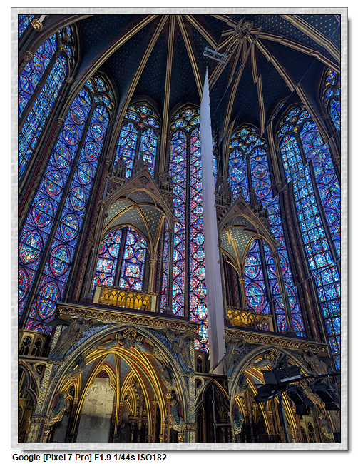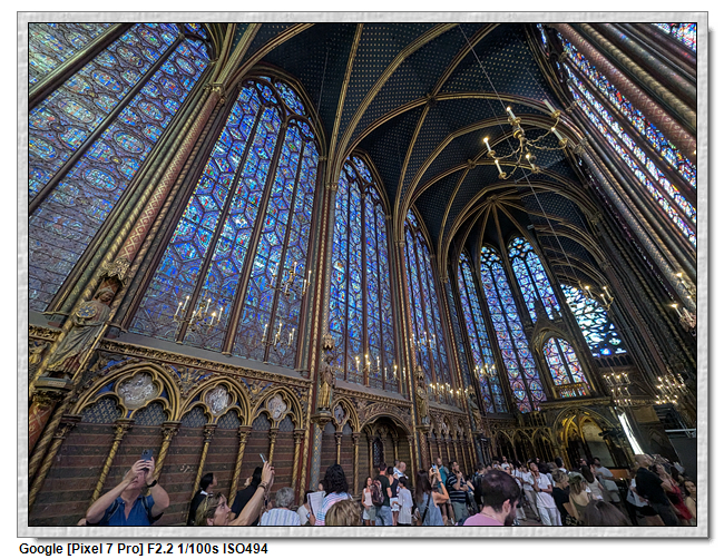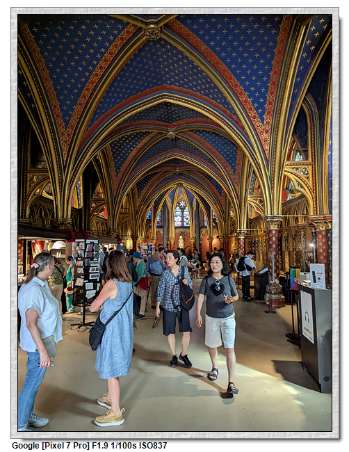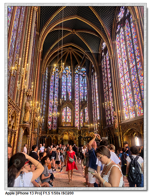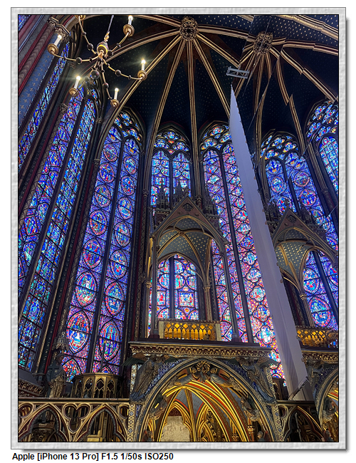 聖徒禮拜堂的的二樓 670 平方公尺的彩色玻璃窗最為珍寶,15 扇巨大彩窗描繪了 1113 幅聖經場景,帶來強烈的光線和驚人的垂直感。