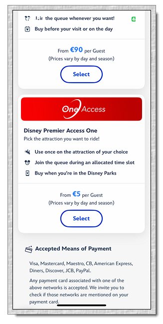 巴黎的快速通關價格,一天的每人90歐,單項價格就不一定,從每人5~21歐。