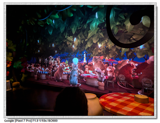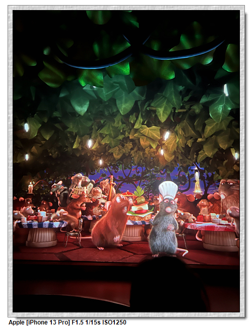 我們這次的策略,是走單人通道,三個人分批玩,這樣的速度快很多。料理鼠王就是坐上一台老鼠車跑來跑去,類似東京的小熊維尼、上海的瘋狂動物城。