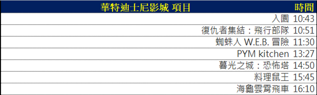 今天華特迪士尼影城的活動流程如下: