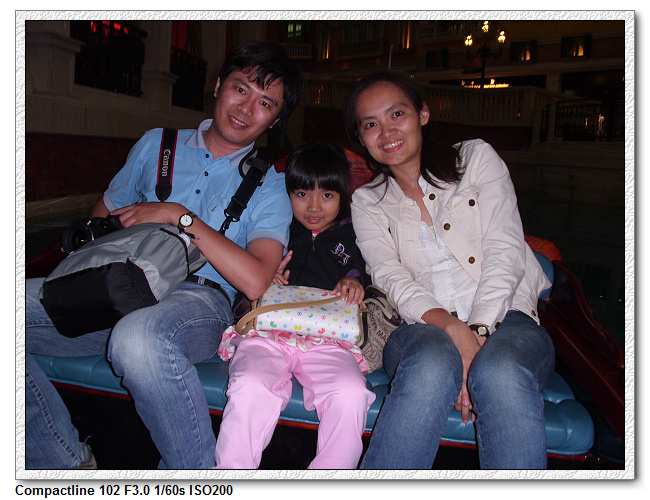 貢多拉遊河是小羽爸臨時起意的行程,省錢的小羽媽當然是不想搭,因為根本就是一個成本不合的遊玩內容,但由於是2比1的票數決定遊河,一票之差輸給小羽和小羽爸兩人。