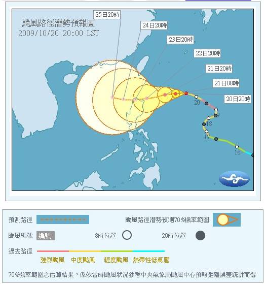 看來上天還是眷顧我的,颱風真的轉向。10/20的颱風預報已有往南的趨勢。哈哈~~~