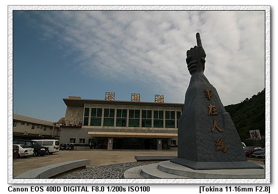 了解船班時間之後,回到福澳港大樓找"一隻手"拍照。整個馬祖充滿許多軍事化的精神標語,相形之下,這隻手的標語就顯的特別。"事在人為、人定勝天",聽起來多麼激勵人啊~~~~