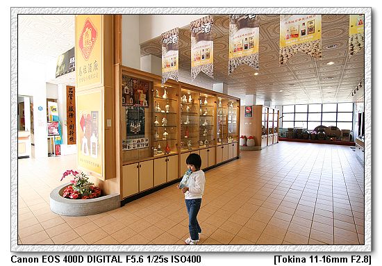 接著接待人員開始介紹展示館內所陳設的物品。中間走道所擺設歷年來酒廠很有特色酒瓶之外,四周皆有傳統釀造老酒過程以及器具。