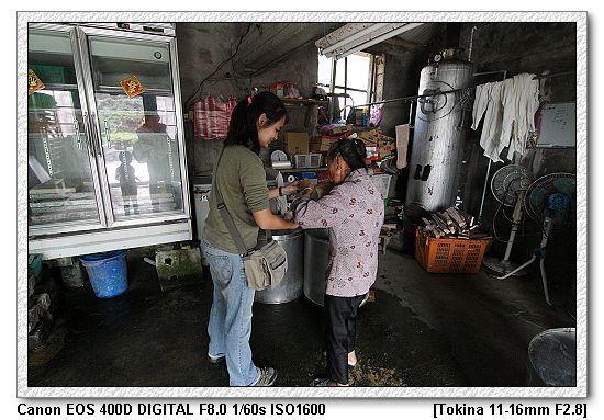 一回到豆腐店,還是沒人,要離開時,有問阿婆突然進來問我們是不是要買豆腐,要買多少?十塊還是二十塊豆腐?一聽到時有點傻眼,這麼多怎麼吃的完,只好厚臉皮的問可以只買2塊嗎?可以耶~~~