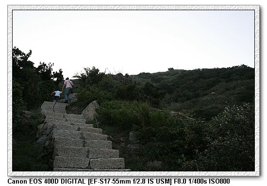 為了找壁山步道,我們騎著車繞了塘岐村好幾回,始終找不到。最後在一家賣紀念品店的老闆以及店內的阿兵哥指引下,終於找到 傳說中的壁山步道。(那兩個阿兵哥一直說爬步道很累,他們每天都要爬步道回營區,很痛恨。勸我們要三思~~~)