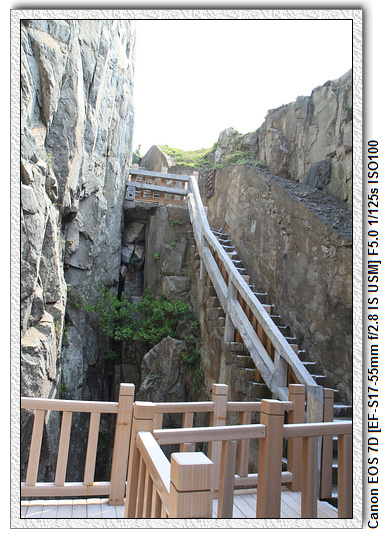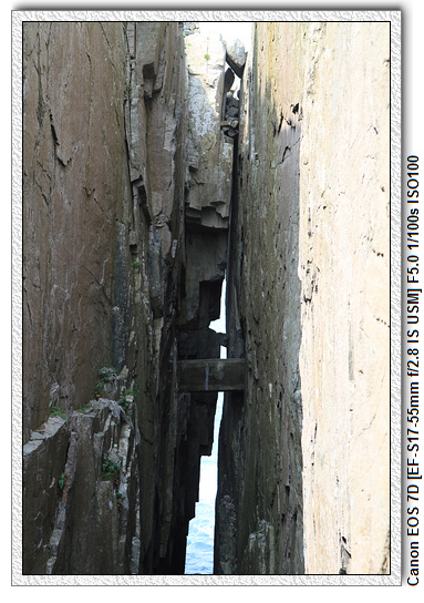 一線天也是在烈女義坑旁附近。一線天為一處海蝕溝地形,底部海浪拍擊石塊,如萬馬奔騰之音。
