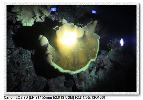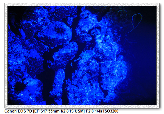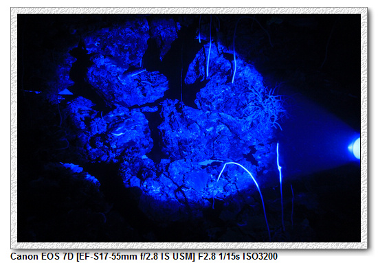 【用藍光照射珊瑚,有些會有螢光喔;夜晚不好拍,就沒多拍了】