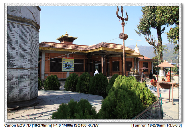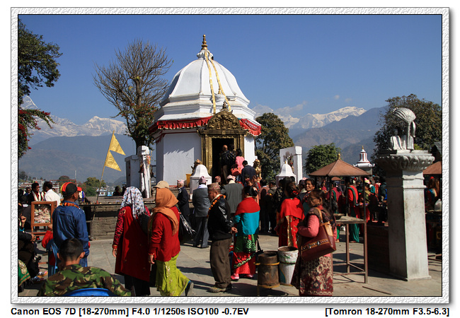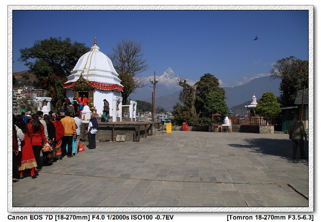 尼泊爾的廟有三種建築,一是圓頂(現在看到的印度廟),另一是方形(待會遊湖小島上的廟),第三是山形,如四眼天神廟和博達塔。 且廟都蓋的矮矮的,目的是要讓人低頭,尊敬神明。