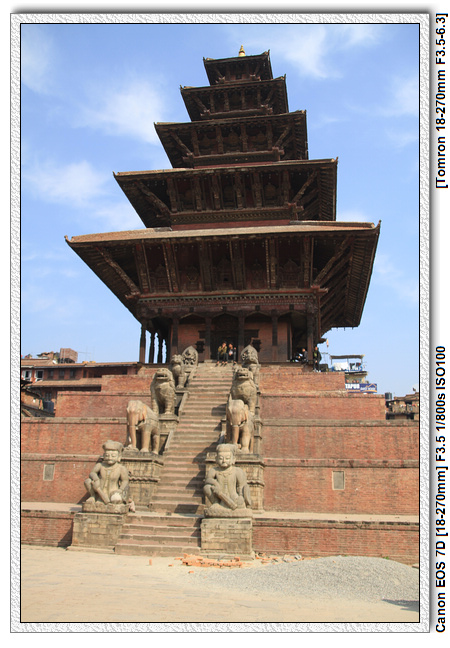 尼亞塔波拉神廟 是尼泊爾最高的廟,1934年地震時,尼泊爾80%廟都塌了,但尼亞塔波拉神廟卻一點事都沒有。