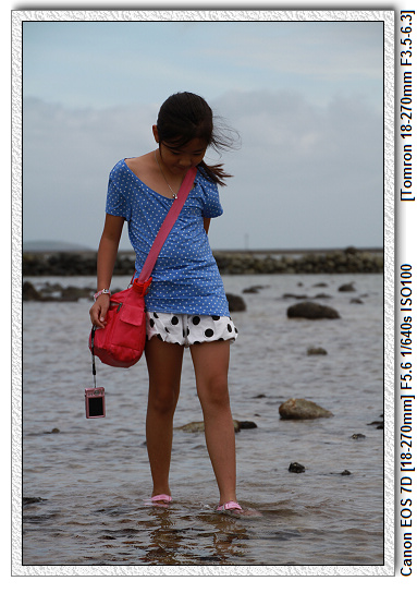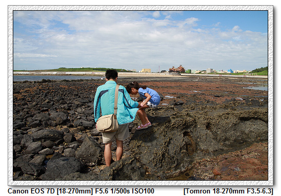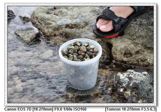 【沙灘途中,有對老夫婦正在抓螺,已經滿滿一杯】