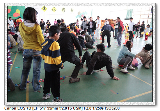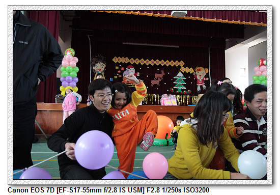 這一項"聖誕響叮噹"的遊戲,主角們則是小朋友的爸媽。小朋友在旁休息。