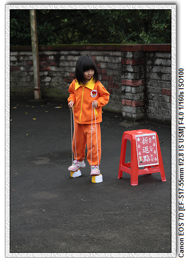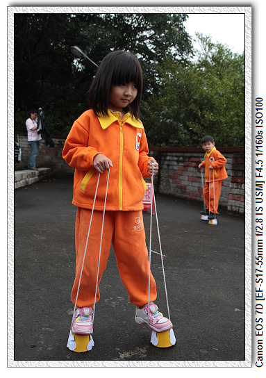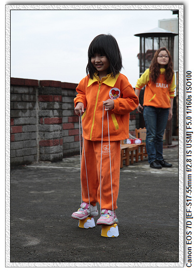 第三關,是踩高蹺的遊戲。看起來不難,不過小羽走起來卻是怕怕的樣子。
