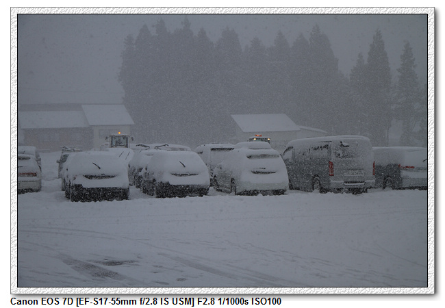 ▼【 已經出動剷雪車剷雪,停車場的車輛都快被雪埋】