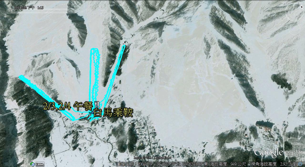 由於小羽媽的初階少滑了一次,就先到locker換下鞋子,等小羽爸和小羽回來後,三個人決定到不遠處的餐廳吃飯。小羽媽這時的Gotex鞋就超好用,幾乎和小羽的雪鞋一樣可以在雪地上走路,而且又不會浸冰。