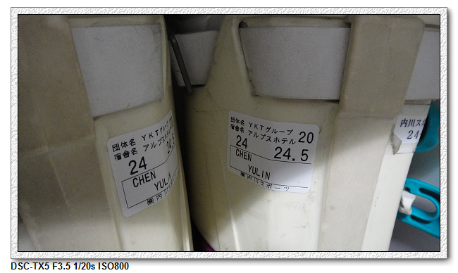 這次比較貼心的是,每個人的雪板以及雪鞋都有貼名字標籤,至少不會像去年一樣有拿錯雪板的事情發生。
