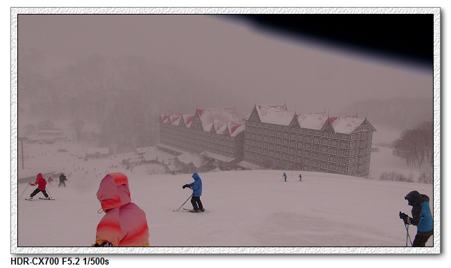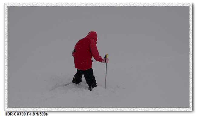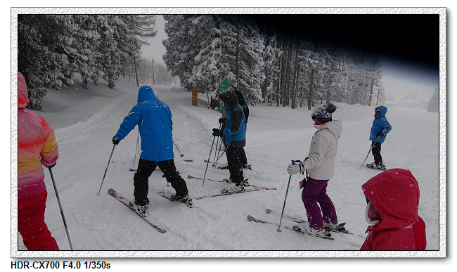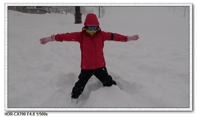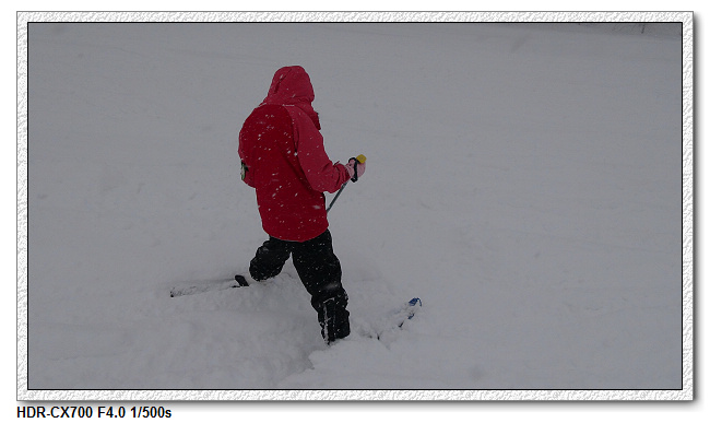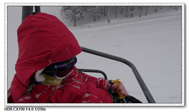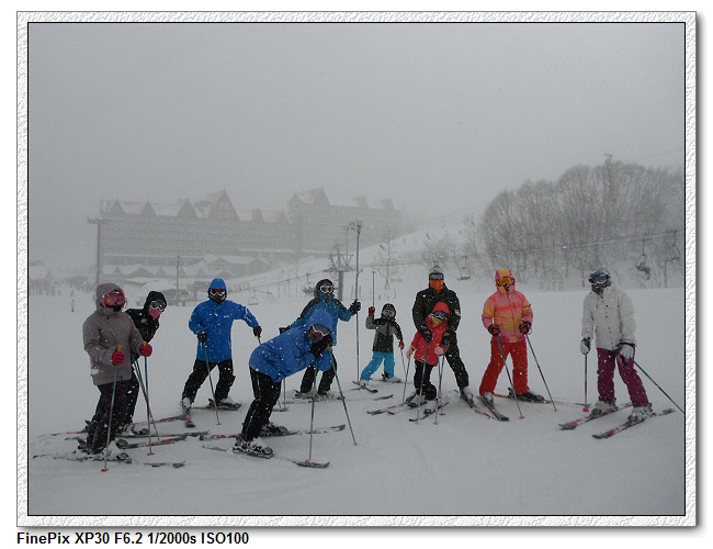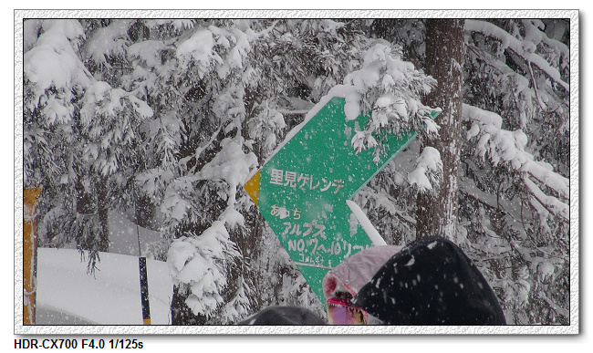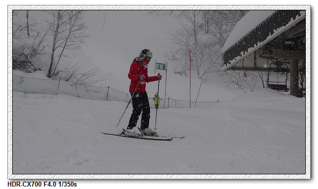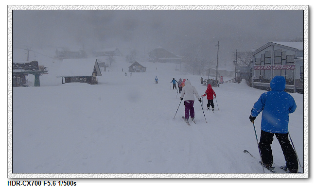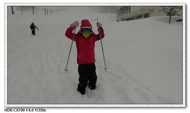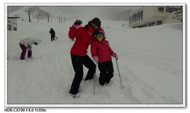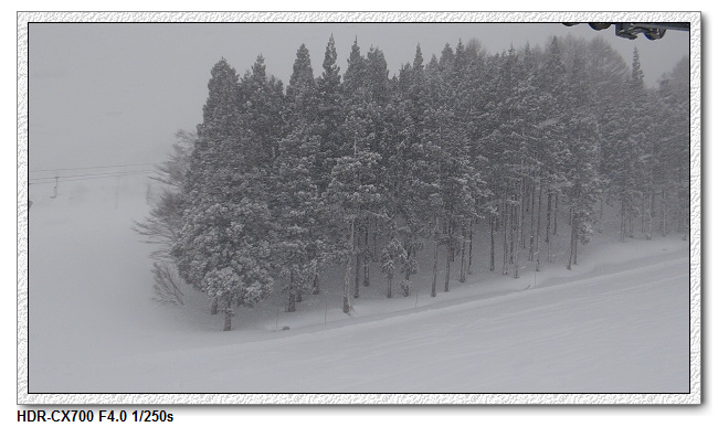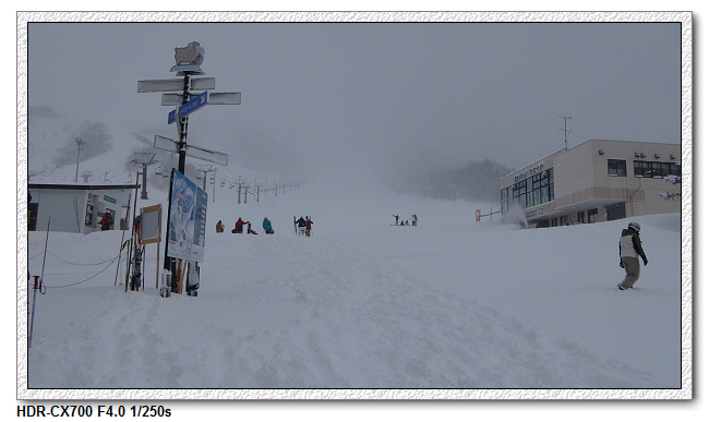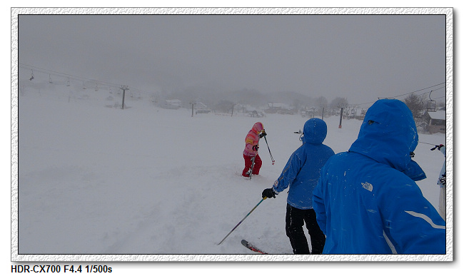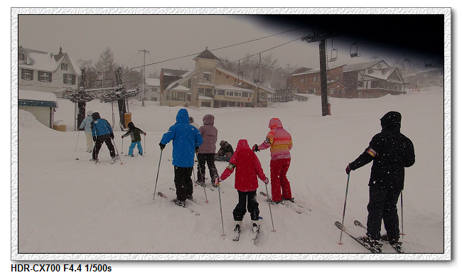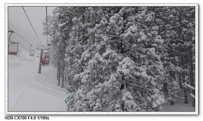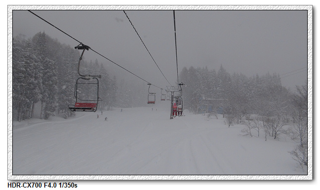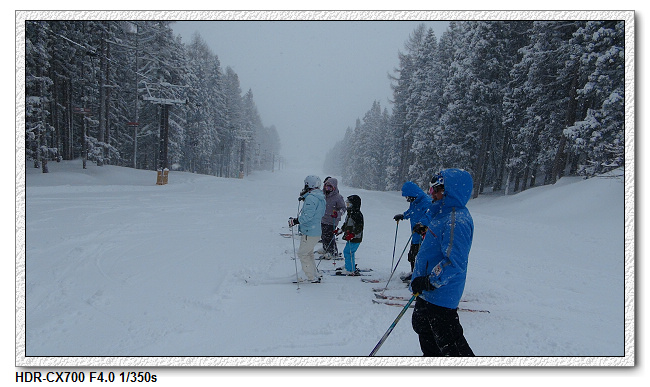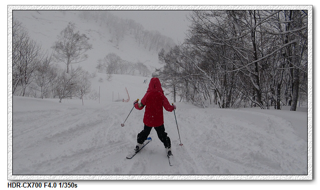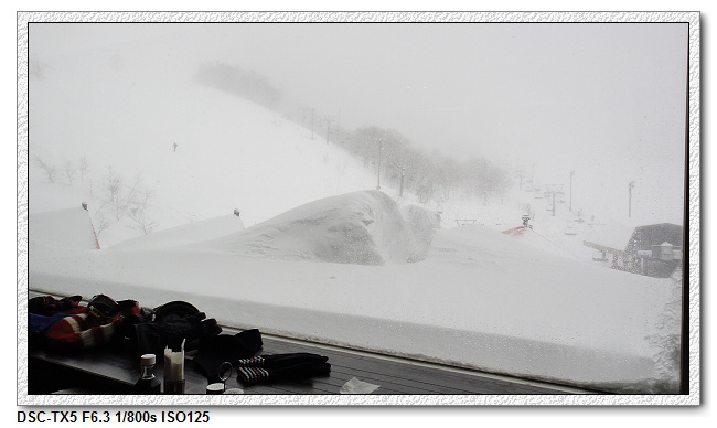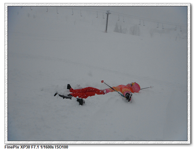 天氣維持下雪天,不過因為昨天下了一整晚的雪,尚未壓平,呈現鬆雪的狀態,與昨天上午冰面感覺不同。雪板整個被埋在雪裡,滑起來特別的不同,好像在雲裡滑雪一樣。