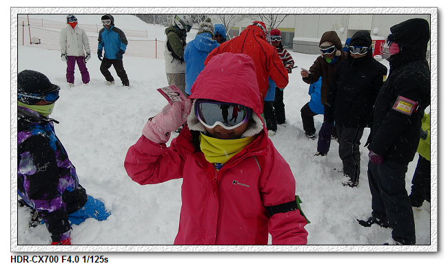 好不容易下來了,小羽媽這次全副武裝戴了雪鏡、帽子走出旅館,卻仍不敵小羽班排綠線的速度,小羽班第二次眼睜睜地在小羽媽眼前離開,原本小羽媽要穿上雪板追上,但後面有一群學生,只好作罷,第三次,小羽班總算進旅館來,這時才知道小羽班已經在中繼站吃過午餐,但小羽經過中間的陡坡,情緒相當不穩定,一付可憐、快哭的模樣,小羽媽陪上過廁所,就先跟著初階班同學再練一次2號滑道,打算再和中階班會合,一起回旅館。