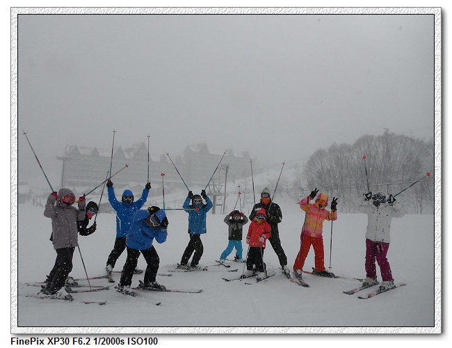後來在九號纜車追上中階班,就一起滑回旅館, 這時小羽和小羽媽一起坐纜車已經受不了哭了起來,(被陡坡嚇到了啦!!),回到旅館已經三點半了,小羽、小羽媽偷懶先回去休息,小羽爸又多滑了兩∼三趟練習。