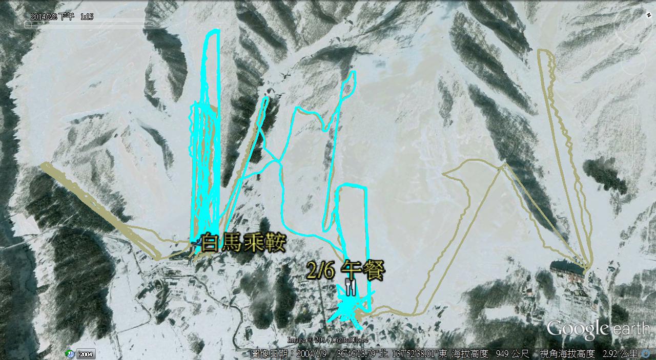 約莫滑了兩到三趟,中階班拉到4號滑道的更上面5號(有一個超陡坡),在纜車上告知我們待會要拉到昨天雪場中繼站吃午餐,小羽媽班教練就開始不怎麼說話,直接把小羽媽班帶往6號纜車,事後才知,原來教練不等中階班滑下來,就打算直接拉過去,一路馬不停蹄地到達中繼站,中階班還沒過來(這是當然,中階班人數眾多,且又多滑了一個超高難度的5號滑道),所以小羽媽班只好在附近的另一6號滑道滑,但可能是為了等人,教練完全沒有指導,直接就只是單純的滑雪,滑了兩次,還沒等到人,已經到中午時間,教練把小羽媽班帶往9號滑道(原來這是昨天有滑過的,但因為漫無目的+教練很快地滑下去,中間有一陡坡,感覺相當嚇人),還好小羽媽順利下來,但同班學員慧敏中間摔了一次後,相當緊張,就開始採用教練不久前才剛教的側滑,打算用保命招滑下來,但這缺點就是非常耗時,當時的小羽媽班教練已經相當沒有耐心,不耐煩的問:她是故意的嗎??懷疑學員想要拖時間。