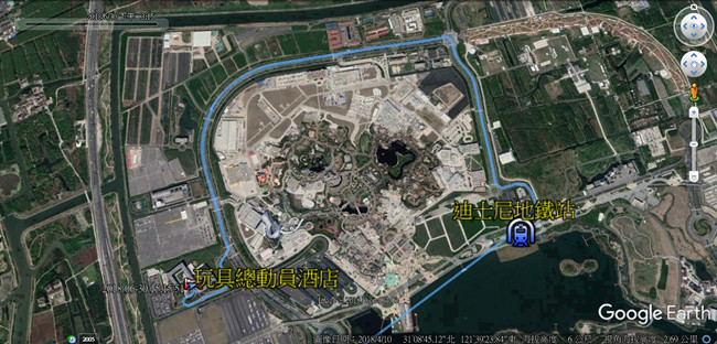 從浦東機場到迪士尼,從地圖上來看,其實不遠,但是搭地鐵前往,可是要繞一大圈才會到迪士尼地鐵站。