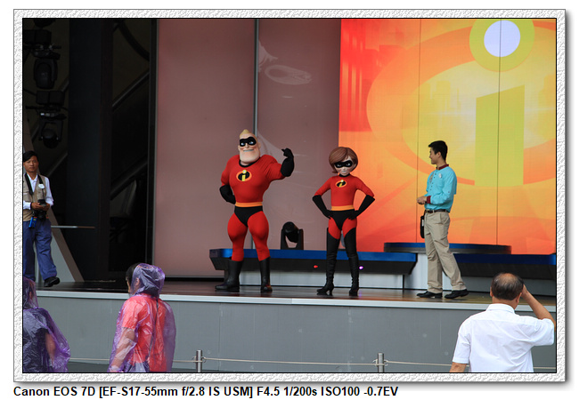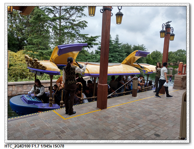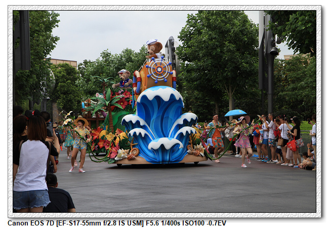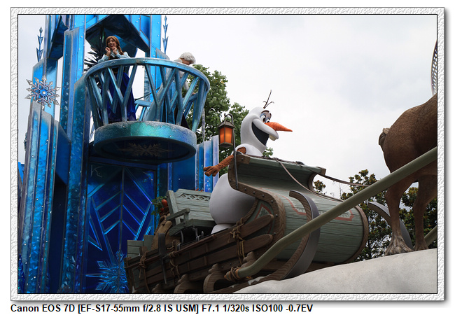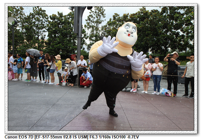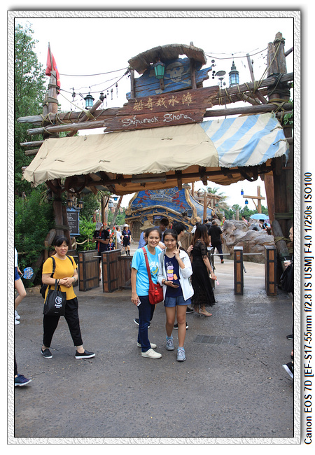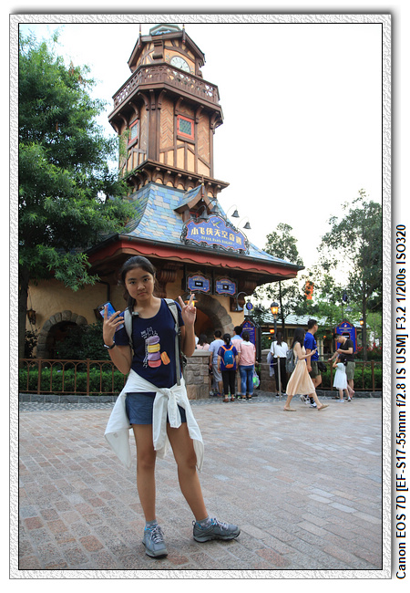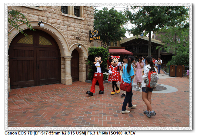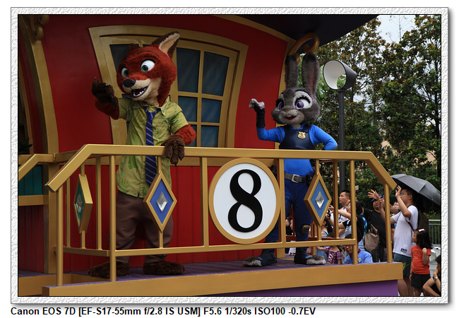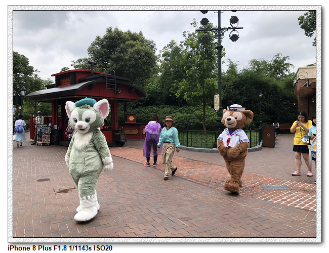 不過,就在尋找老車站商店的途中,意外遇到雪莉玫&星黛露出巡,我們就一路跟隨他們,來到拍照地點等待。滿幸運的,還算是排的前面,在我們前面只有三對6位,感覺應該很快就輪到。但是,事情不是我們這些非專業達粉想的這麼簡單,前面有對專業粉絲,除了擺大量各式動作之外(好吧,難免的行為,畢竟也不是常來這拍照),竟然拿出簽名簿(忘了拍照,真可惜),沒想到雪莉玫&星黛露也很自然地就簽了,實在很好奇穿著一身 布偶裝,是要怎麼簽名(聽說還簽得很漂亮,還會畫愛心,有練過的)。