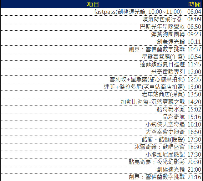 今天上海迪士尼樂園的活動流程如下: