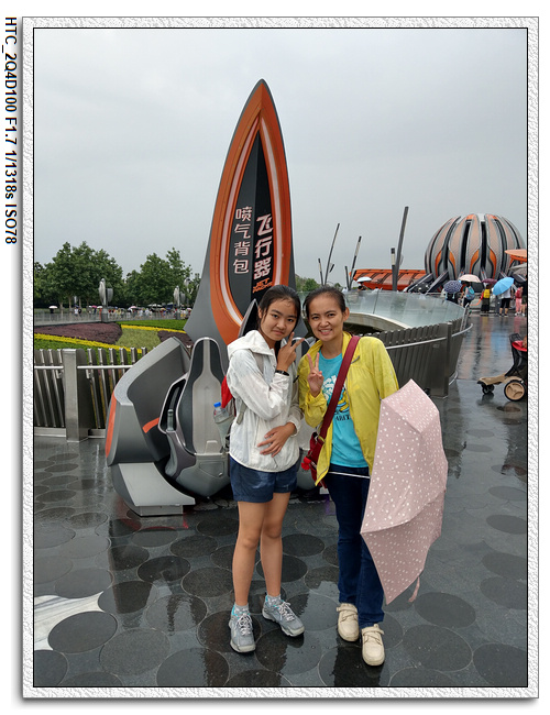▼【 第一個設施,噴氣背包飛行器;還沒開始玩就下雨,淋雨飛行】