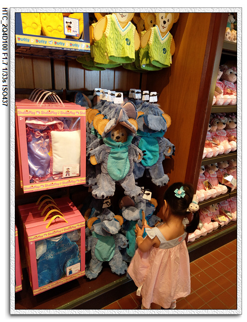 這次來到上海迪士尼,小羽一直孜孜在念要去老車站商店,網友說裡面有上海限定版達菲。這個是她來上海迪士尼的任務。