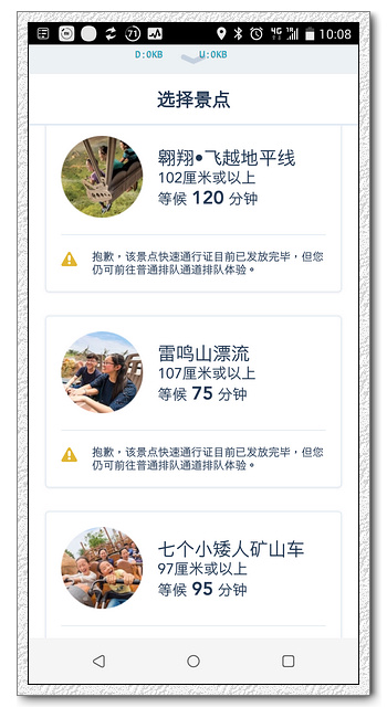 一入園,馬上將票卡登入至app,馬上抽第一個fast pass,創急速光輪,已經是排到10點的順位,不到10點,7個可抽快速通關的設施,已經有3個被抽完了,超可怕的。