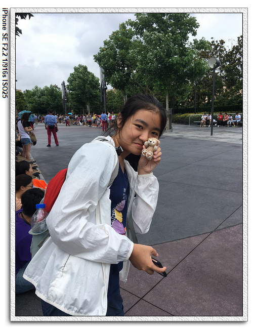 就在排隊等達菲&傑拉多尼的等待時間,小羽媽跟前面的上海媽媽聊起來了,就是她跟我們說一些關於光輪以及簽名的事情。她們一家已經來上海迪士尼20多次了,每次還是覺得很好玩,她們通常待不久,因為小孩要早睡,所以不會像我們一樣玩到晚上。