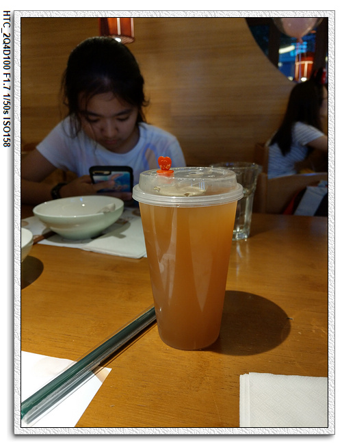 晚餐回到迪士尼小鎮用餐,找了一家南小館的店。一進店後,服務員領位入坐,隨即告知用桌上條碼微信點餐,當下有點傻眼,我們沒微信,最後來還是請服務員幫忙點餐。另外,入坐後附上的茶水,竟然是熱水,這種大熱天,竟然附上熱茶水,好吧,小羽爸只好加點飲料。原本想說就這樣了,後來隔壁桌還了一群外國人,不清楚是哪個國籍,也是對附上的熱茶水有意見,隨即請服務員提供冰塊(因為服務員聽不懂英語,小羽媽有幫忙翻譯),既然可以提供冰塊,我們也隨後複製要求提供冰塊。