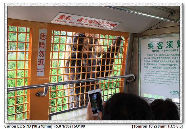 投餵車的樣子,還真的很像是把人關在車內給動物們看,體驗一下被關讓人欣賞的感覺。