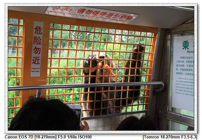 投餵車的行經路線, 食草動物->獵豹->獅子->熊->東北虎->白虎->狼->馬來熊,一開始的食草動物大家沒啥激烈的反應,直到進入食肉動物區後,車上才開始驚呼連連,主要也是動物們的反應也很讓人深刻。