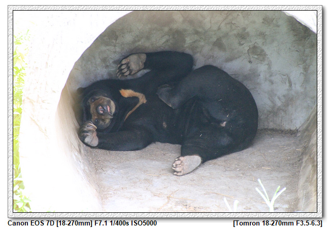 ▼【 直到東北投餵員餵食,才懶懶得出來,不過這個量應該只夠他們篩牙縫吧~】